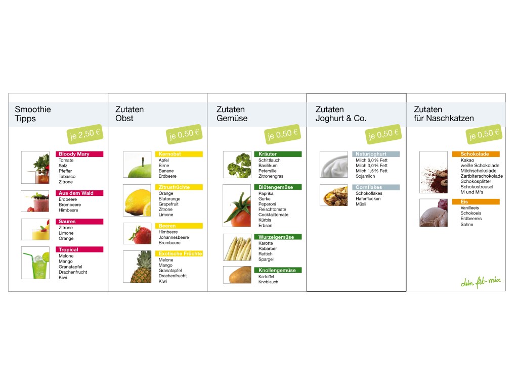 Entwurf des Logos, Geschäftspapieren, Postern, einer Kundenbroschüre und einer Menükarte