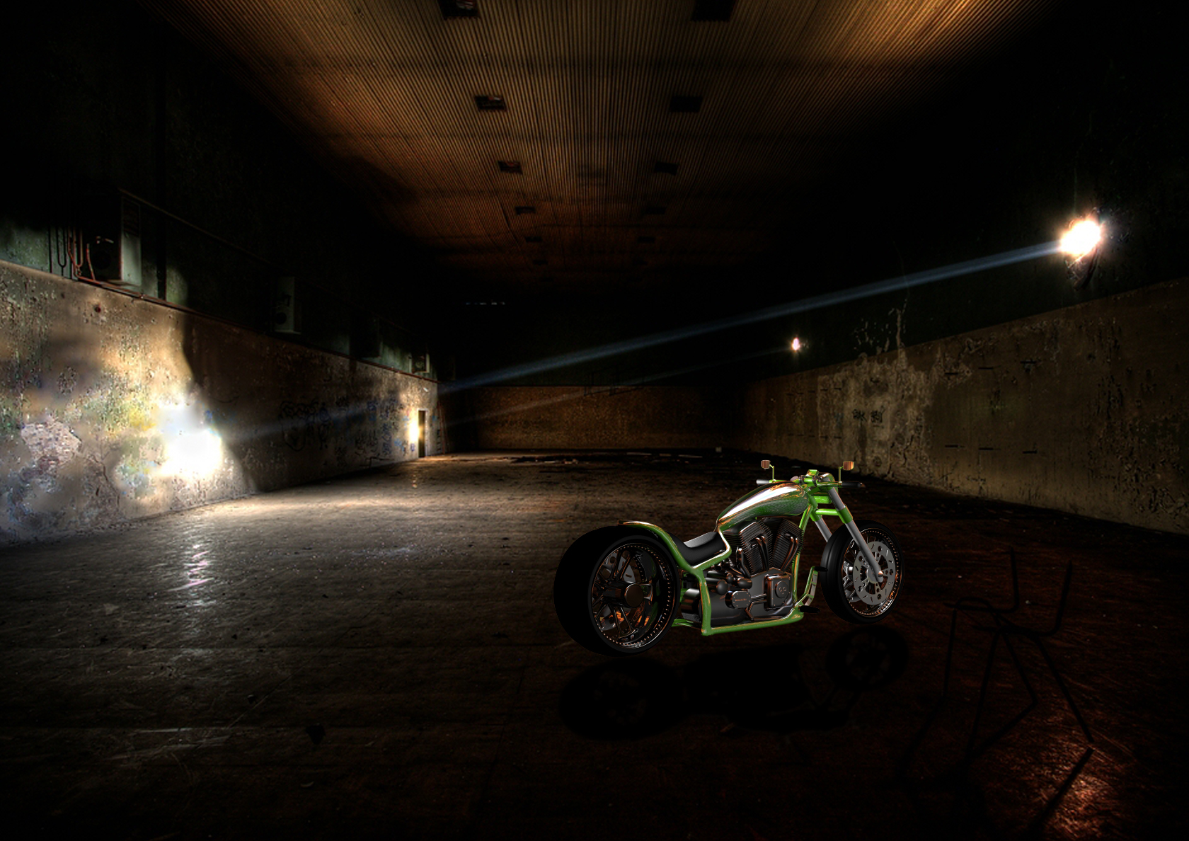 Abschlussarbeit des 3D Kurses im Studium und gleichzeitig Visualisierung des Custom Bikes von Stefan Palkoskas selbst gebauten Custom Bikes.