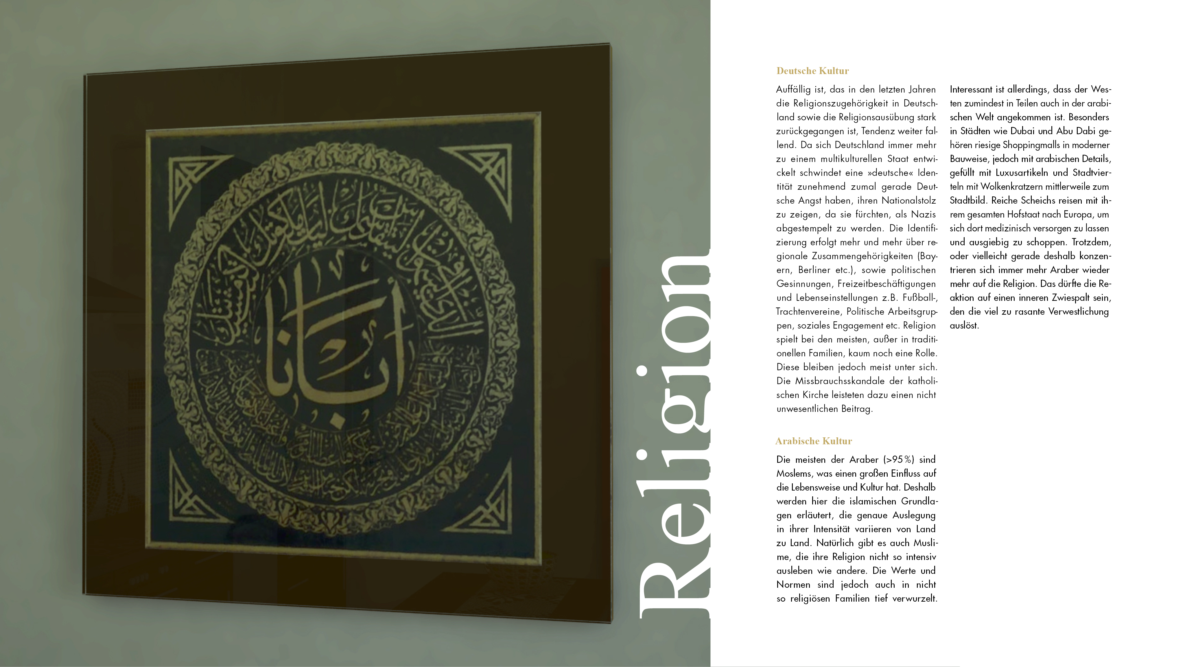 Erstellung eines interaktiven Hauses in 3D, Erläuterung von Unterschiede zwischen arabischer und deutscher Kultur anhand von speziefischen Gegenständen.