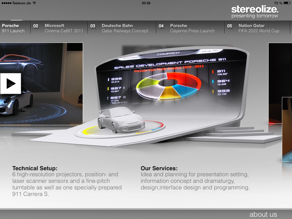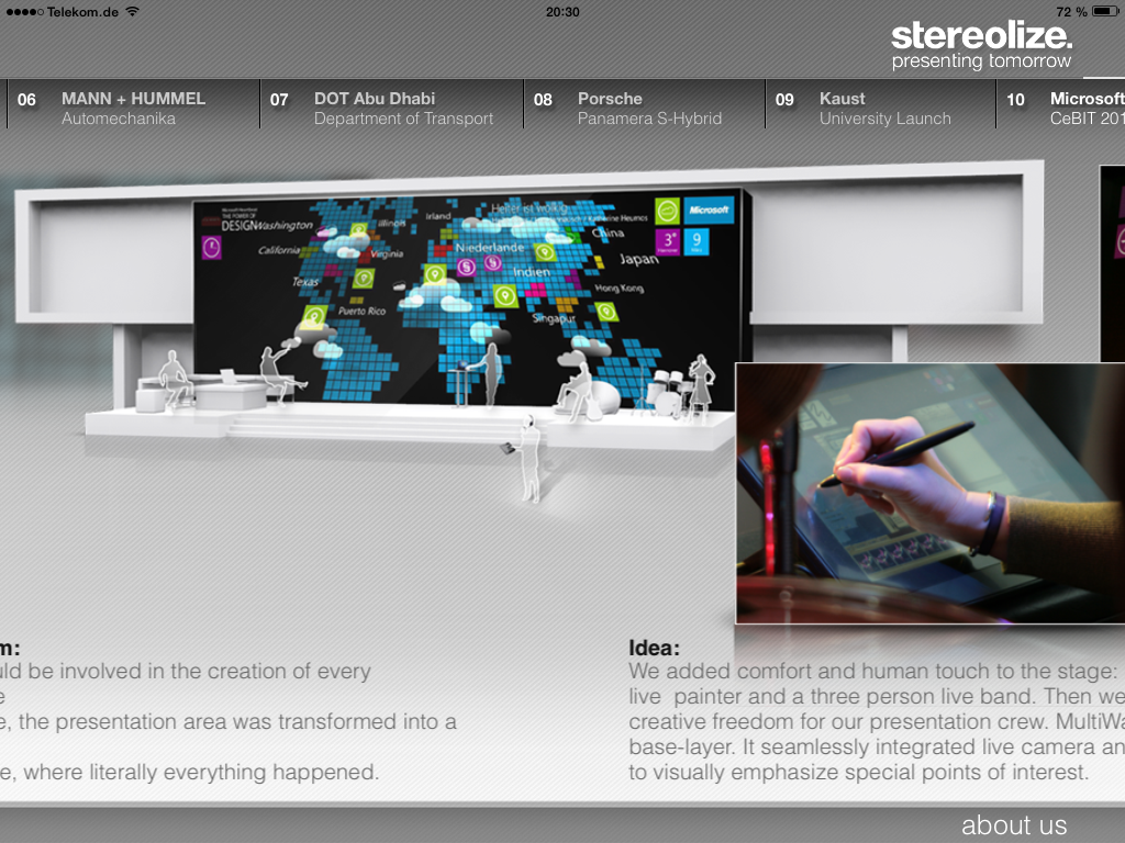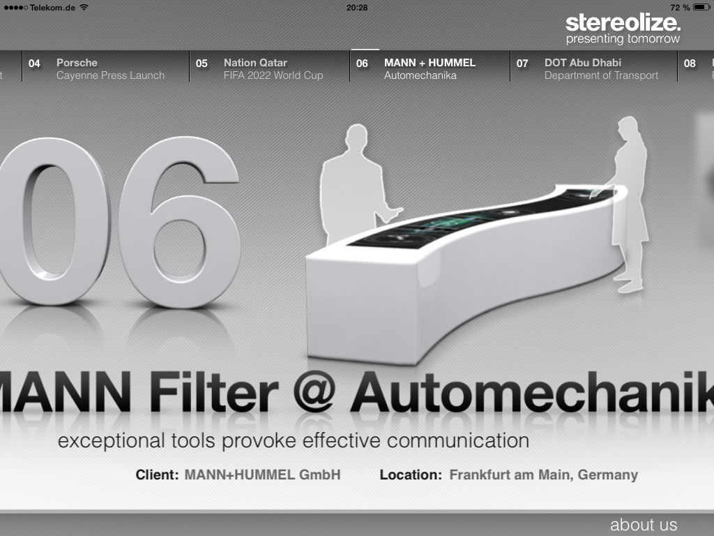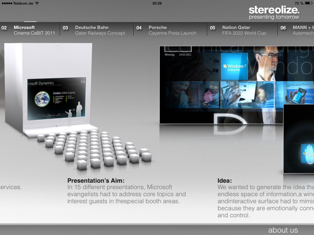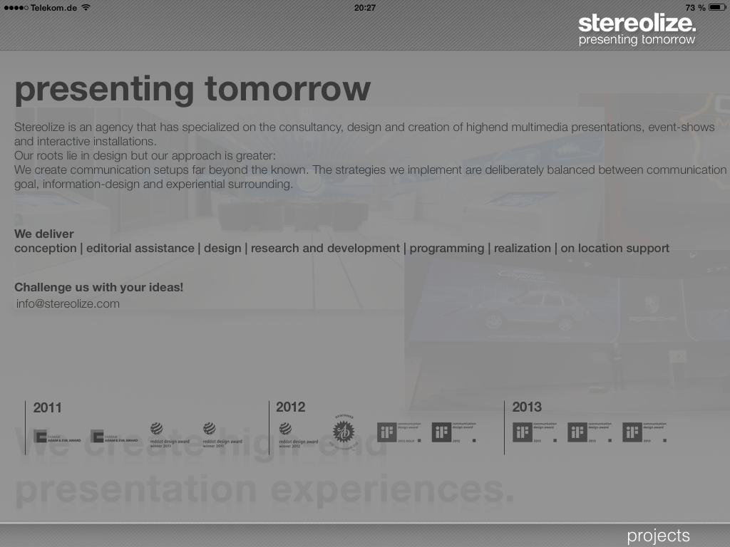 (stereolize.) App von Stereolize, die Beispielprojekte der Agentur zeigt und erklärt.