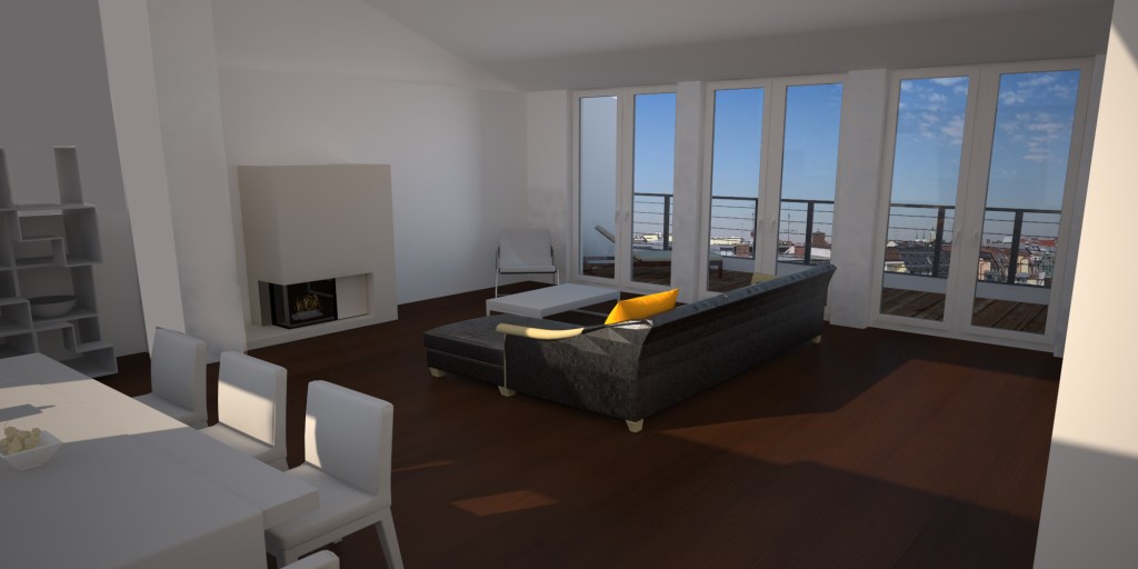 3D Visualisierung einer zu verkaufenden Penthouse-Wohnung in Ludwigsvorstadt-Isarvorstadt