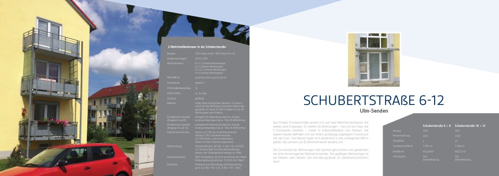 Gestaltung eines Verkaufsexposés für 2 Mehrfamilienhäuser in Ulm Senden.